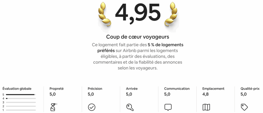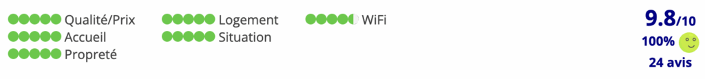 Nom : Anaïs S 9,6/10 (Juin 2025) « Une merveille » Ce gîte est vraiment magnifique, toutes les attentions de l’hôte sont géniales. Je recommande à 150%.